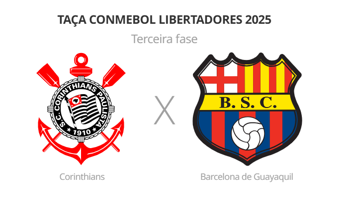 O perdedor deste confronto seguirá na Copa Sul-Americana. Corinthians e Barcelona-EQU se enfrentaram apenas duas vezes na história: além da vitória do time equatoriano na semana passada, o Timão goleou os equatorianos por 5 a 1 em um amistoso realizado em 1966, em Manágua, capital da Nicarágua.